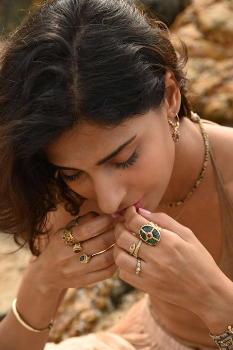 MAHARADJAH Beer Quartz Bague Argent plaqué Or 24 cts
