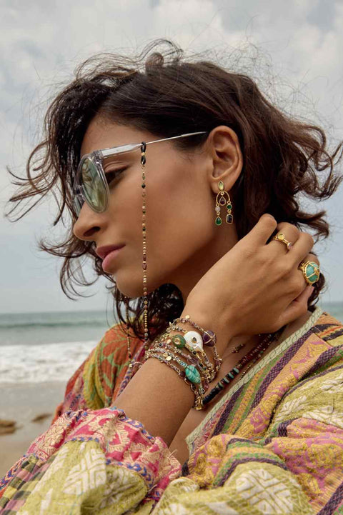 BLOOM Boucles d'oreilles Grenat et multi-pierres - doré 24 cts