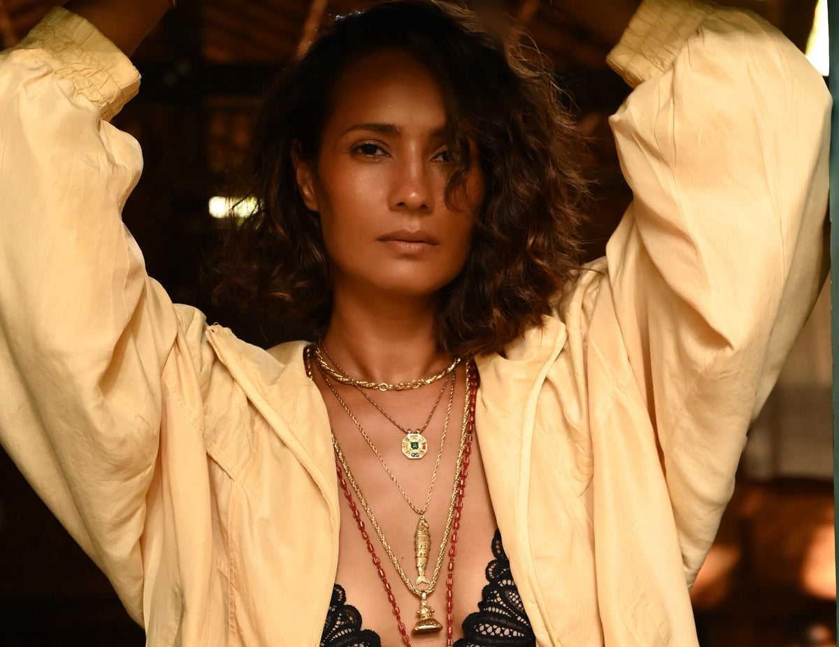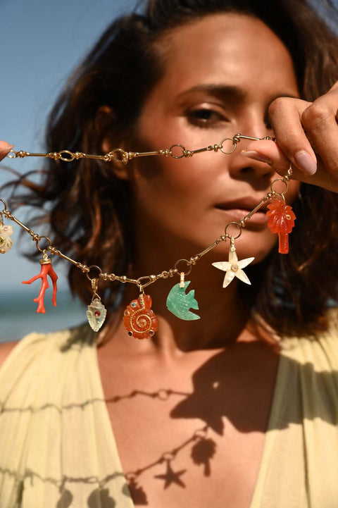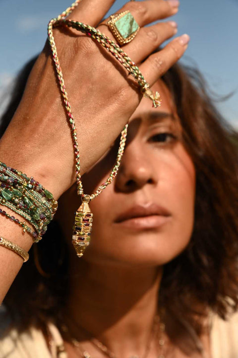 KUCHI Collier Amulette Pierres Multicolores Doré 24 cts