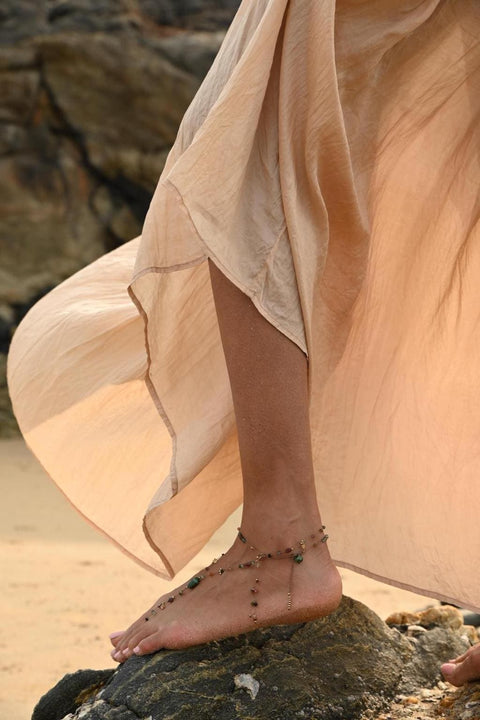 Collier - Talisman inspiré des amulettes "Kuchi" Afghanes, en laiton doré à l'or 24 carats, serti de pierres fines naturelles multicolores: Grenat, Citrine, Turquoise, Améthyste, Rhodolite, Diopside et d'une Perle...