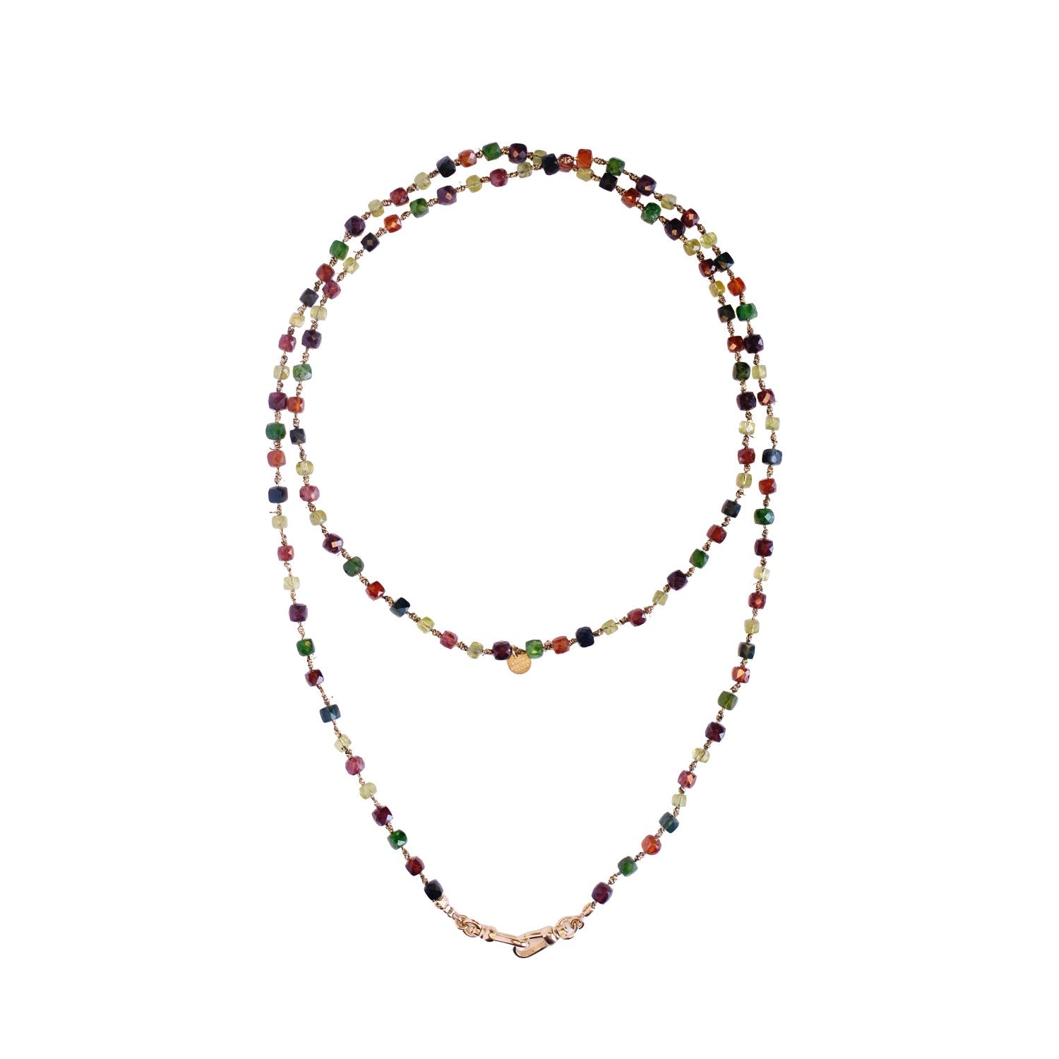 Chaîne en perles en pierres fines cubiques facettées en Grenat, Peridot, Diopside Mousquetons en laiton plaqué or 24 carats permettant d'attacher un charm de votre choix. Vous pouvez porter la...