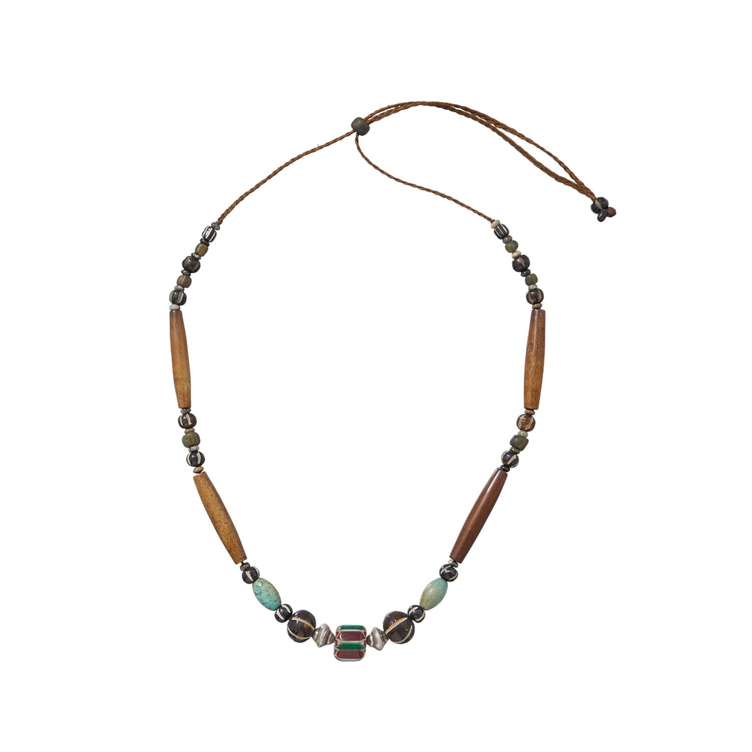 Collier avec perle vénitienne ancienne en verre, perles en argent 925, Turquoises, perles en bois sculpté. Cordon tressé en coton ciré, longueur réglable par une perle coulissante. Les perles vénitiennes...